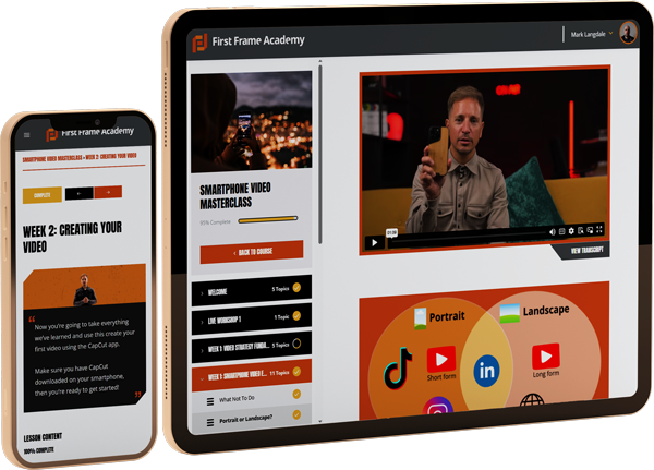 Access to our First Frame Academy and a modern smartphone. Your team may wish to buy additional equipment as part of the video filming, but this is entirely optional. We provide a full equipment list as the course progresses.